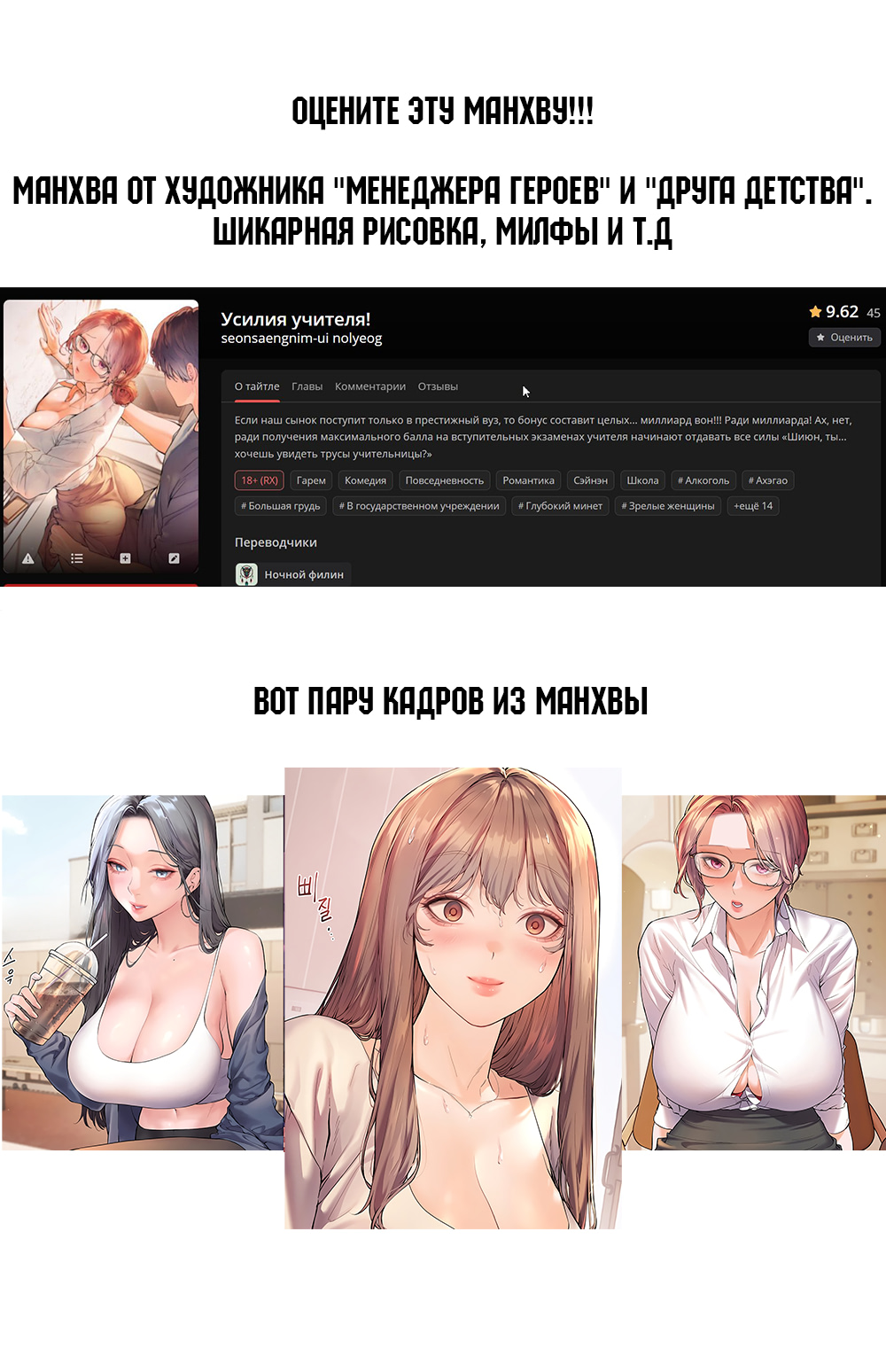 Добро пожаловать на Hmanga.su! У нас вы найдете богатый выбор хентай манги на русском языке – бесплатно и без регистрации. Исследуйте разнообразные жанры, такие как романтика, фантастика, приключения и многое другое. Наш сайт включают в себя: Хентай манга: База разнообразных хентай историй. Манхва и маньхуа: Захватывающие работы в стиле хентай из разных стран. Бесплатно: Весь контент предоставляется абсолютно бесплатно для пользователей. Онлайн чтение: Удобная возможность читать хентай мангу прямо в браузере. Русский язык: Весь контент доступен на русском языке. Без регистрации: Никаких ограничений, начните читать сразу. Романтика, фантастика, приключения: Разнообразие жанров для каждого вкуса. Новинки: Следите за последними обновлениями и новыми главами. Наши теги обеспечивают вам легкий поиск и удовольствие от чтения. Погружайтесь в захватывающий мир хентай манги прямо сейчас!